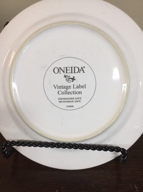 Oneida Vintage Label Collection Plate Size 8" Dishwasher/ Microwave ... Oneida Vintage Label Collection Salad Plate Size 8". Dishwasher/ Microwave Safe Item is in pristine condition no chips cracks or scratches crisp colors Feel free to check my feedback and rest assured your item will arrive safe and as described Please view photos as they are the true items description Thanks for looking God bless ...