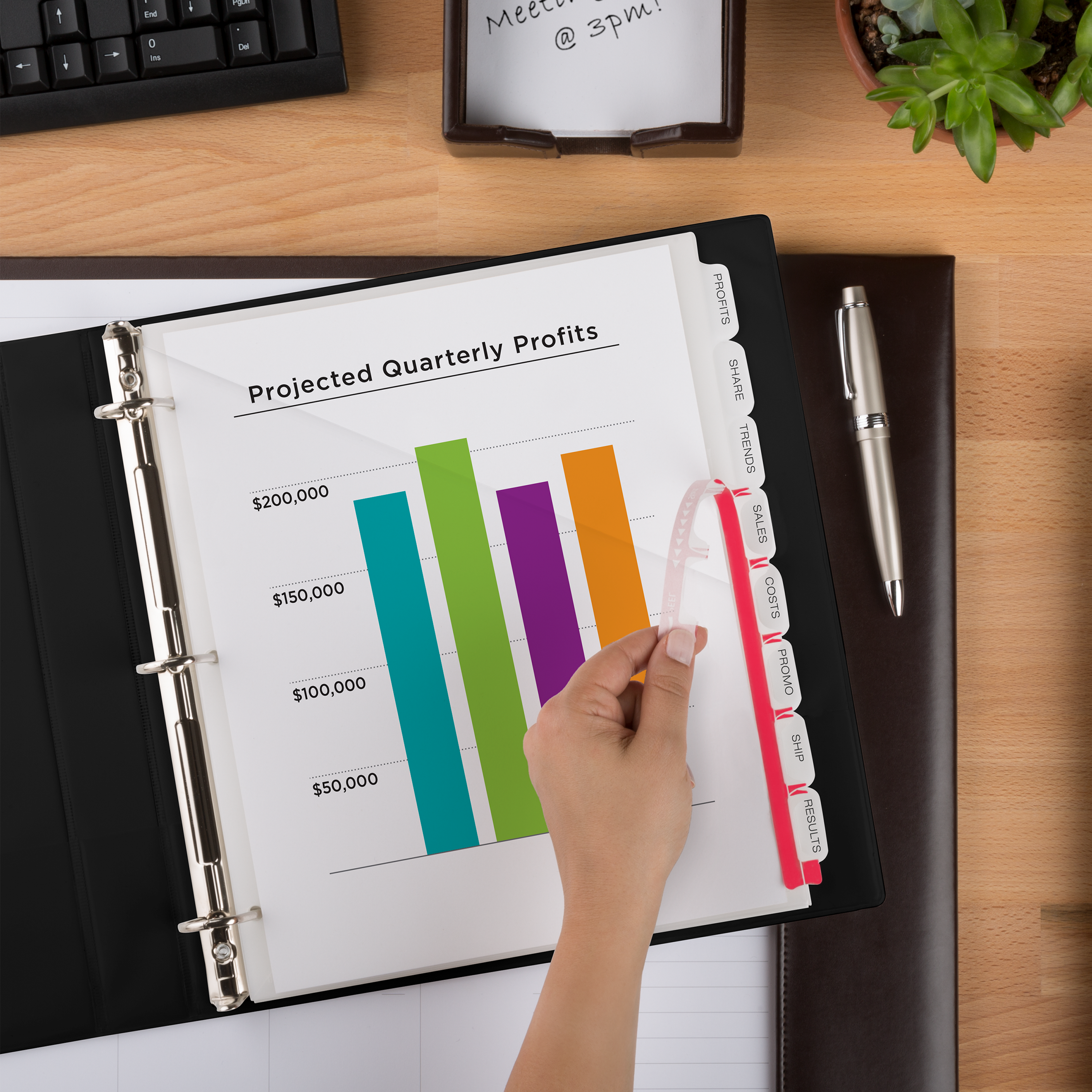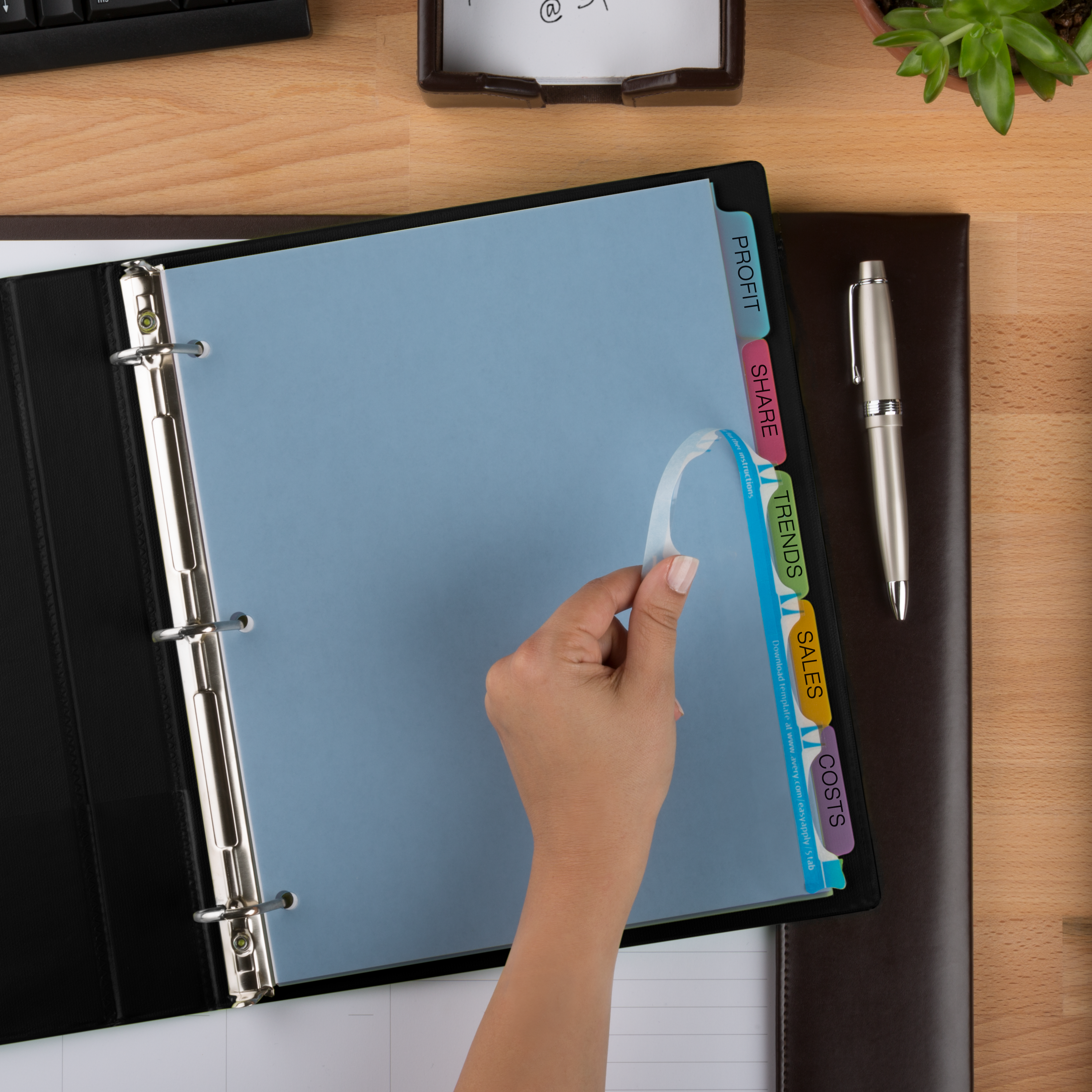 Avery 11429 | Avery Index Maker Clear Label Dividers Description: Whether you're organizing a single project or creating multiple sets, Index Maker clear labels virtually disappear on divider tabs to give you a professional printed-on look. The Easy Apply label strip lets you label all tabs at once. Easy to customize with free templates from Avery Design & Print. Big Tab and Extra Wide selections offer greater convenience in office-wide references.
