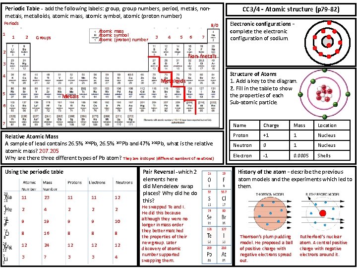 › Elements › 082Pictures, stories, and facts about the ... - Periodic Table They are, in fact, made of pure lead, it's really only the labels that make them interesting. Source: Anonymous Contributor: Theodore Gray Acquired: 11 August, 2007 Text Updated: 8 December, 2007 Price: Confidential Size: 3" Purity: 99% Sample Group: Medical Periodic Table add the following labels group group - SlideToDoc.com Periodic Table - add the following labels: group, group numbers, period, metals, nonmetals, metalloids, atomic mass, atomic symbol, atomic (proton number) CC 3/4 - Atomic structure (p 79 -82) Electronic configurations - complete the electronic configuration of sodium. Structure of Atoms 1. Add a key to the diagram. 2. Standard periodic table, group labels - Stock Image - C001/3001 Well-known groups include the alkali metals (Group 1), the alkaline earth metals (Group 2), the halogens (Group 17) and the noble gases (Group 18). The standard periodic table has 118 elements arranged in 18 groups and 7 periods. Each element is represented by its chemical symbol. Periodic Table Labels Flashcards | Quizlet right side of staircase. nonmetals. left side of staircase. metals. things become more metallic the farther _______ you go. left. furthest on the right group on periodic table. noble gases. group that comes before noble gases.