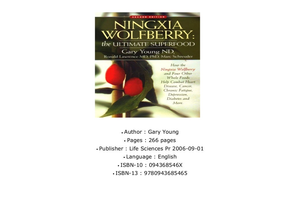 Ningxia Wolfberry: Ultimate Superfood: How The Ningxia Wolfberry And ... Ningxia Wolfberry: Ultimate Superfood: How The Ningxia Wolfberry And Four Other Foods Help Combat Heart Disease, Cancer, Chronic Fatigue, Depression, Diabetes And More| Marc Schreuder, Peau Pour Peau (TEXT IN FRENCH)|Douglas Rutherford, Cobralingus|Jeff Noon, Tony Hawk's American Wasteland(tm) Official Strategy Guide (Official Strategy Guides (Bradygames))|BradyGames, A Journey Through Poetry|Jude Tochukwu Okonkwo, Crim Just Today: Intro Text & Cj Ill& Sg Pkg|NA, Window And Indoor Gardening ... Ultimate Superfood- Ningxia Wolfberries - Optimum Choices Chinese Ningxia Wolfberries—Optimum Superfood Ningxia Wolfberry: The Ultimate Superfood. This book documents the amazing 15-year odyssey that started with Gary Young's worldwide travels in 1990 searching for longevity diets, to his discovery of the Ningxia wolfberry and, ultimately, to the final formulation of NingXia Red. It documents all the studies, all the science and all the benefits inherent in this amazing fruit.