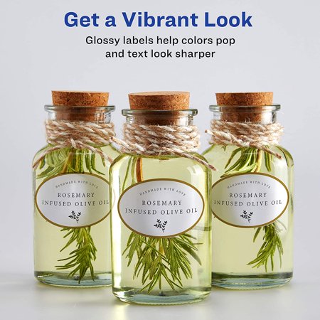 Avery 22804 Oval Labels; Sure Feed; Laser/Inkjet Compatible; 1 1/2" x 2 ... 180 Glossy White Labels; Create a premium appearance in an instant with Avery glossy white labels. This eye-catching material adds a beautiful sheen that helps your print appear brighter and sharper. These sheets also feature exclusive Avery Sure Feed technology to improve print alignment and avoid paper jams.