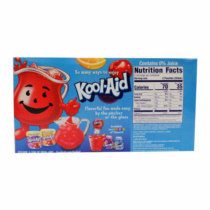 How many capri suns are in a box? Explained by FAQ Blog Capri-Sun and Kool-Aid are among 30 drinks that contain less than 5 percent juice, a whole lot of sugar and are considered bad for your kids. Is Capri-Sun healthier than soda? Is Capri Sun Healthier Than Soda? 100 ml of Coca-Cola contains 10.6 grams of sugar, not far from the 7.3 grams for 100 ml of Capri Sun. Based on these facts, Capri Sun is ... What Kind Of Crackers Are In Lunchables : Crackers - Sugar Girl Cookies cooked ham water added - chopped and formed - smoked flavor added - ham water, contains less than 2% of sodium lactate, potassium chloride, modified cornstarch, sugar, sodium phosphate, salt, sodium diacetate, sodium ascorbate, flavor, sodium nitrite, smoked flavor.pasteurized prepared cheddar milk, water, milk protein cheese product - … Order Acme - Kool Aid Drink, Cherry - Acme Fresh Market Buy now and save $0.70 each. Product Details Drink, Cherry Artificially flavored drink. 55% less sugar than leading regular sodas. 100% daily value of vitamin C. 30 calories per pouch. Contains 0% juice. So many ways to enjoy Kool-Aid. Flavorful fun made easy, by the pitcher or the glass. Available in a rainbow of flavors! Become a fan of Kool-Aid!