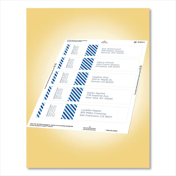 Avery Labels, 7.85 x 1.75, Textured White, 5/Sheet, 10 Sheets/Pack ... Avery Labels, 7.85 x 1.75, Textured White, 5/Sheet, 10 Sheets/Pack (AVE22838) zoom Price $22.11 /Pack $16.38 /Pack (Save 26%) Deliver One Time Auto Delivery Every Qty Add to Cart Avery Rectangle Labels, Inkjet/Laser Printers, 7.85 x 1.75, Textured White, 5/Sheet, 10 Sheets/Pack Product SKU: AVE22838