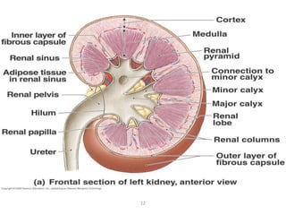 A&P II (Ch 24 - 25) Flashcards | Quizlet Some labels will be used more than once. A byproduct of amino acid catabolism in the liver is Urea Antiduretic hormone release results in increased water reabsorption in the kidneys. Place the events of ANP release in the correct sequence from beginning to end. The expulsion of urine from the bladder is referred to as micturition Kidney Structures and Functions Explained (with Picture and Video ... Kidney Structure The bean-shaped kidneys have an outer convex side and an inner concave side called the renal hilus, where the renal artery, vein, and ureter are found. A thin connective tissue called the renal capsule surrounds each kidney. This capsule maintains the kidneys' shape and protects the inner tissues. Labeled Diagram of the Human Kidney - Bodytomy The renal medulla comprises a set of 8-18 conical structures called renal pyramids that are surrounded by the cortex. Portions of the cortex between two adjacent pyramids are termed as renal columns. Spread in these pyramids and the cortex, are the functional units callednephrons. The actual filtration of blood occurs in the nephrons. A&P 139 Urinary System Flashcards | Quizlet Label the external anatomy of the kidney, using the hints provided. Place the following vessels in the correct order of blood flow, starting with the vessel that is a branch off the aorta. Place the following structures found in the female pelvis is order from posterior to anterior. Recommended textbook solutions 1,678 solutions 642 solutions