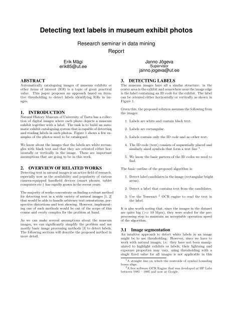 Guidelines for Making Wall Labels for Your Art Exhibition Labels within an exhibition should all be the same size unless there is need for longer, explanatory text. Place object labels to the right if at all possible. Large sculpture may require that you place a label on the nearest wall or floor. Hang all labels at the same height and use a level to make sure they are parallel to the floor. Museum label - Wikipedia A museum label, also referred to as a caption or tombstone, is a label describing an object exhibited in a museum or one introducing a room or area. Museum labels tend to list the artist's name, the artwork's name, the year the art was completed, and the materials used. They may also include a summary, description, the years the artist lived, and the dimensions of the work. A GUIDE TO EXHIBIT DEVELOPMENT - Smithsonian Exhibits Webphotos, maps, illustrations, charts, diagrams, etc. Media elements, including video and audio presentations, add additional senses to the exhibit and help bring the content to life. Interactives, including electromechanical and digital interactives, allow visitors to participate in the exhibit in a hands- and minds-on way and learn by doing.