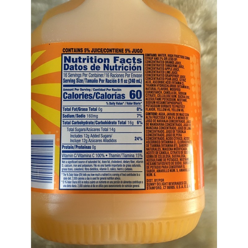 Sunny d nutrition facts ingredients