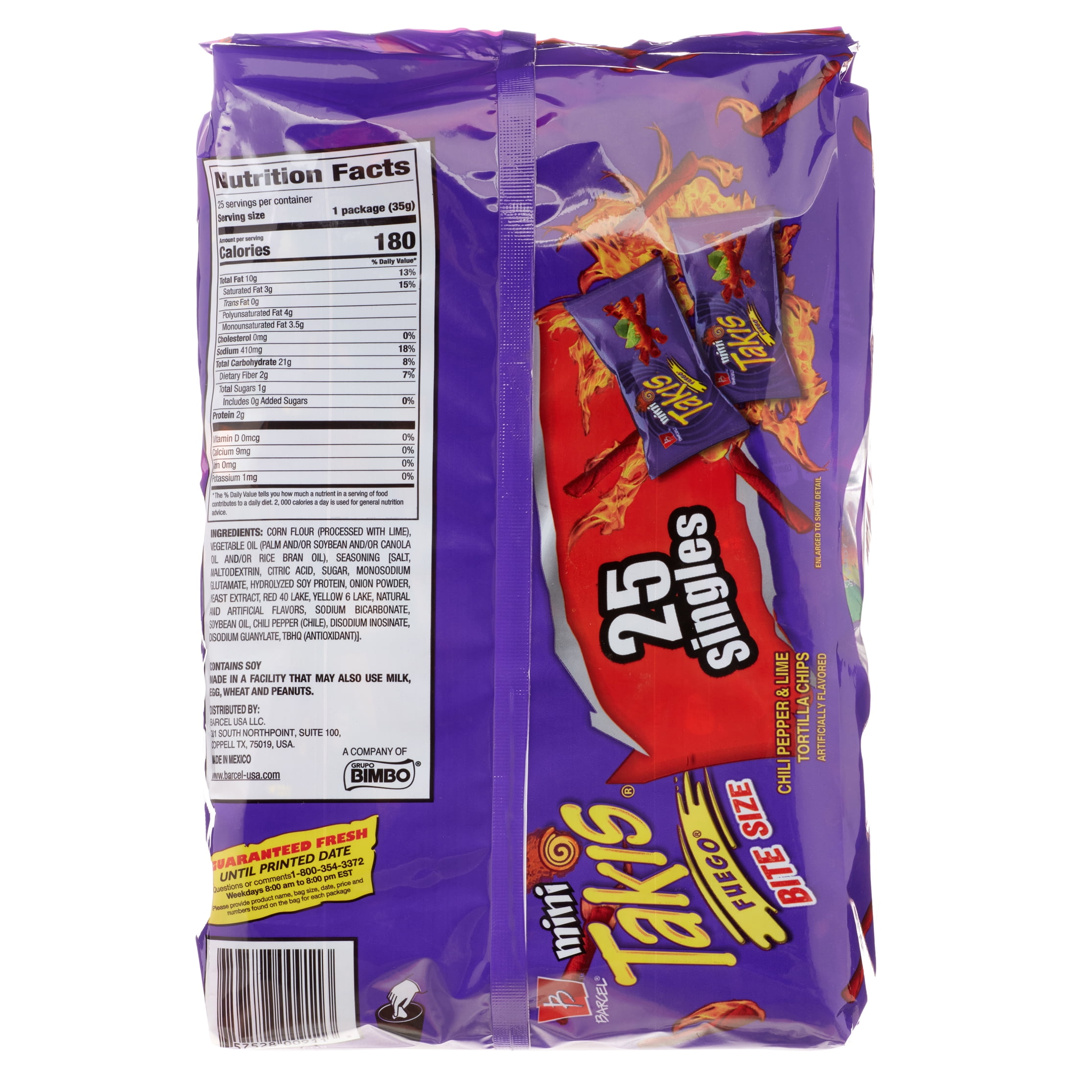 Are Takis Chips Bad for You? - Healthline Takis are high in calories, fat, carbs, and sodium but lack other essential micronutrients. A 1-ounce (28-gram) package of Takis Fuego contains the following nutrients : Calories: 140; Protein: 2 ...