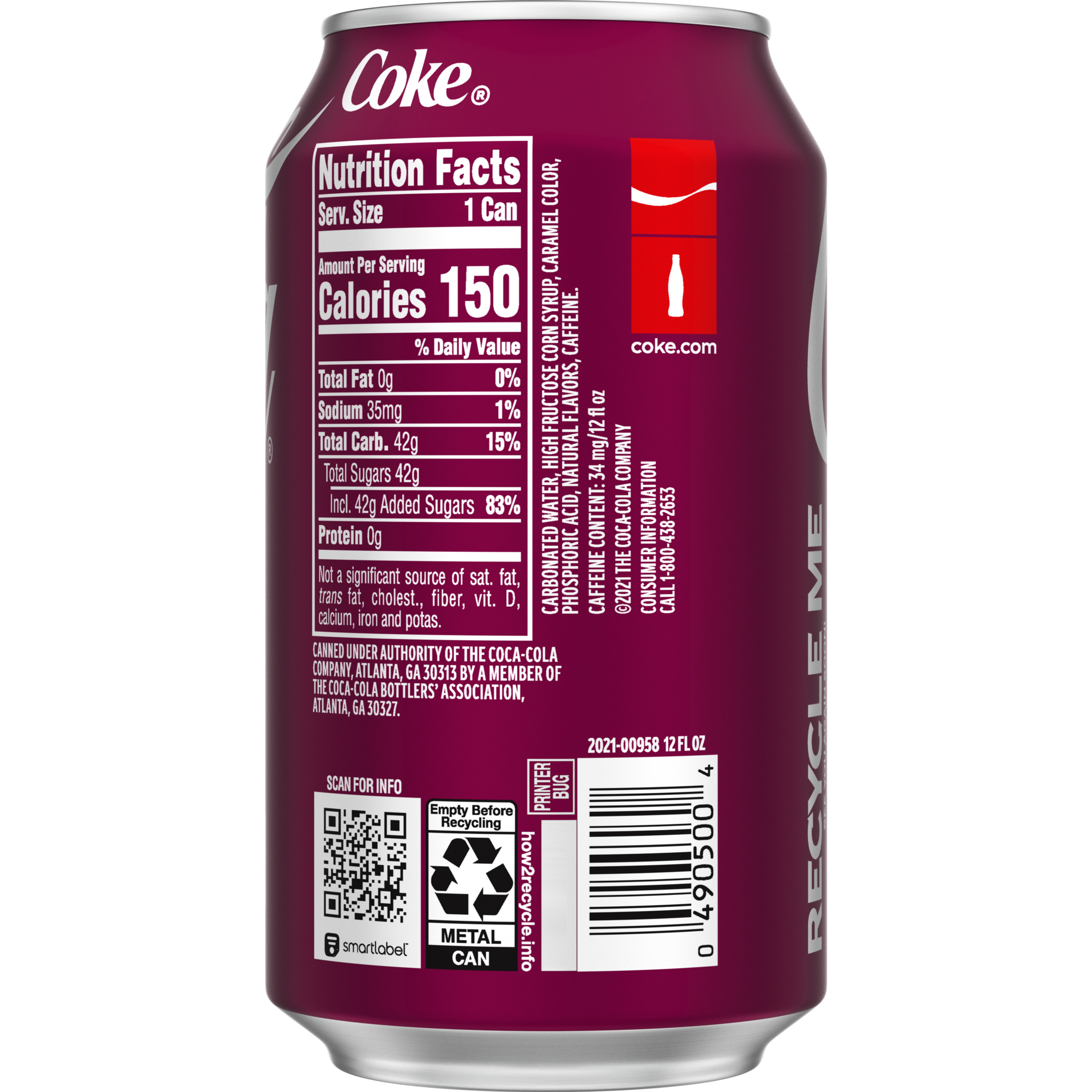 Coke can nutrition facts label