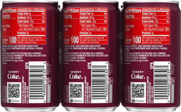 The coca cola nutrition facts - Facts About The World coca cola nutrition facts: There are 39 grams of sugar in a 12 oz Coca-Cola can. Our smaller portion sizes, like our 7.5 oz mini soda can, have less sugar and fewer calories. Coca-Cola comes in several sizes (availability varies based on geography). 7.5 oz - 25g of sugar and 90 calories 8 oz - 26g of sugar and 100 calories Coca-Cola Classic Coke Mini 7.5 oz Cans - Shop Soda at H-E-B Per 1 Can Serving: 90 calories; 0 g sat fat (0% DV); 30 mg sodium (1% DV); 25 g sugars. Very low sodium. Caffeine Content: 21 mg/7.5 fl oz. Original formula. Please recycle cans & cartons. Ingredients Carbonated Water, High Fructose Corn Syrup, Caramel Color, Phosphoric Acid, Natural Flavors, Caffeine.