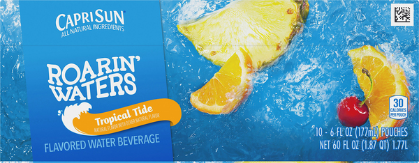 Capri Sun Roarin' Waters Tropical Fruit Flavored Water Beverage 6 oz ... Capri Sun Roarin' Waters Tropical Fruit Flavored Water Beverage 6 oz Pouches 10 pk $3.06 ($0.06/oz) Icon details Product description Natural flavor with other natural flavor. No artificial colors or flavor. Preparation instructions Insert straw into pouch. Ingredients Filtered Water, Sugar, Citric Acid, Stevia Leaf Extract, Natural Flavor.