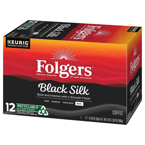 Calories in Folgers Coffee, Dark Roast, Black Silk, K-Cup Pods ... - Fitbit Comprehensive nutrition resource for Folgers Coffee, Dark Roast, Black Silk, K-Cup Pods, Value Pack. Learn about the number of calories and nutritional and diet information for Folgers Coffee, Dark Roast, Black Silk, K-Cup Pods, Value Pack. This is part of our comprehensive database of 40,000 foods including foods from hundreds of popular restaurants and thousands of brands.