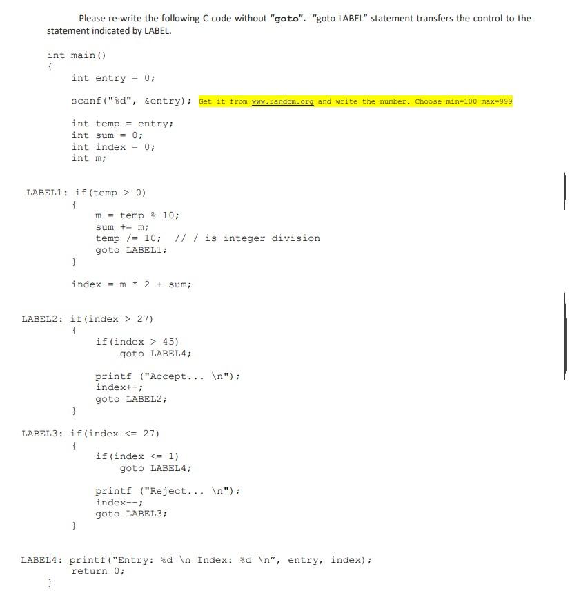 Solved Please re-write the following C code without "goto ...