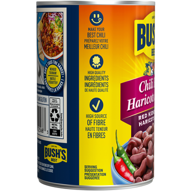 Bushs Best Chili Beans Nutrition Facts - Eat This Much Calories, carbs, fat, protein, fiber, cholesterol, and more for Bushs Best Chili Beans (Bush's). Want to use it in a meal plan? Head to the diet generator ... Bush's Best Kidney Beans in a Mild Chili Sauce - H-E-B Nutrition Facts · Amount Per Serving. Calories. 130 · % Daily Value · Total Fat. 0.5g; 1% · Saturated Fat. 0g; 0% · Trans Fat. 0g · Cholesterol. 0mg; 0% · Sodium. Bush's Best® Mild Mixed Chili Beans, 15.5 oz - Foods Co. Ship. Unavailable ; Gluten Free. Nutrition Facts. 3.5 About servings per container. Serving size1/2 cup (130g). Amount per serving. Calories120. % Daily value*.