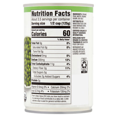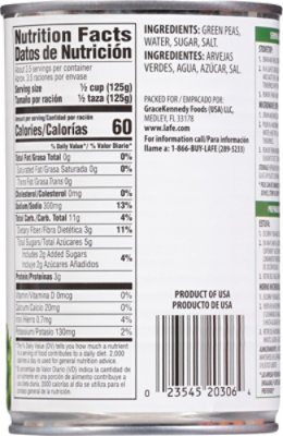 Canned peas nutrition label